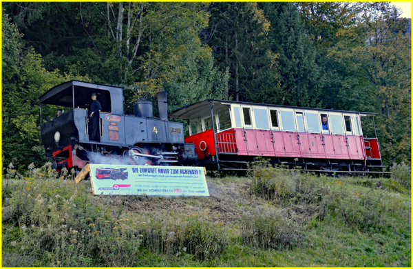 Die weltberühmte Achenseebahn, die ca. 100.000 Touristen jährlich aus dem Tiroler Unterland zum den Schiffen des Achensees befördert.