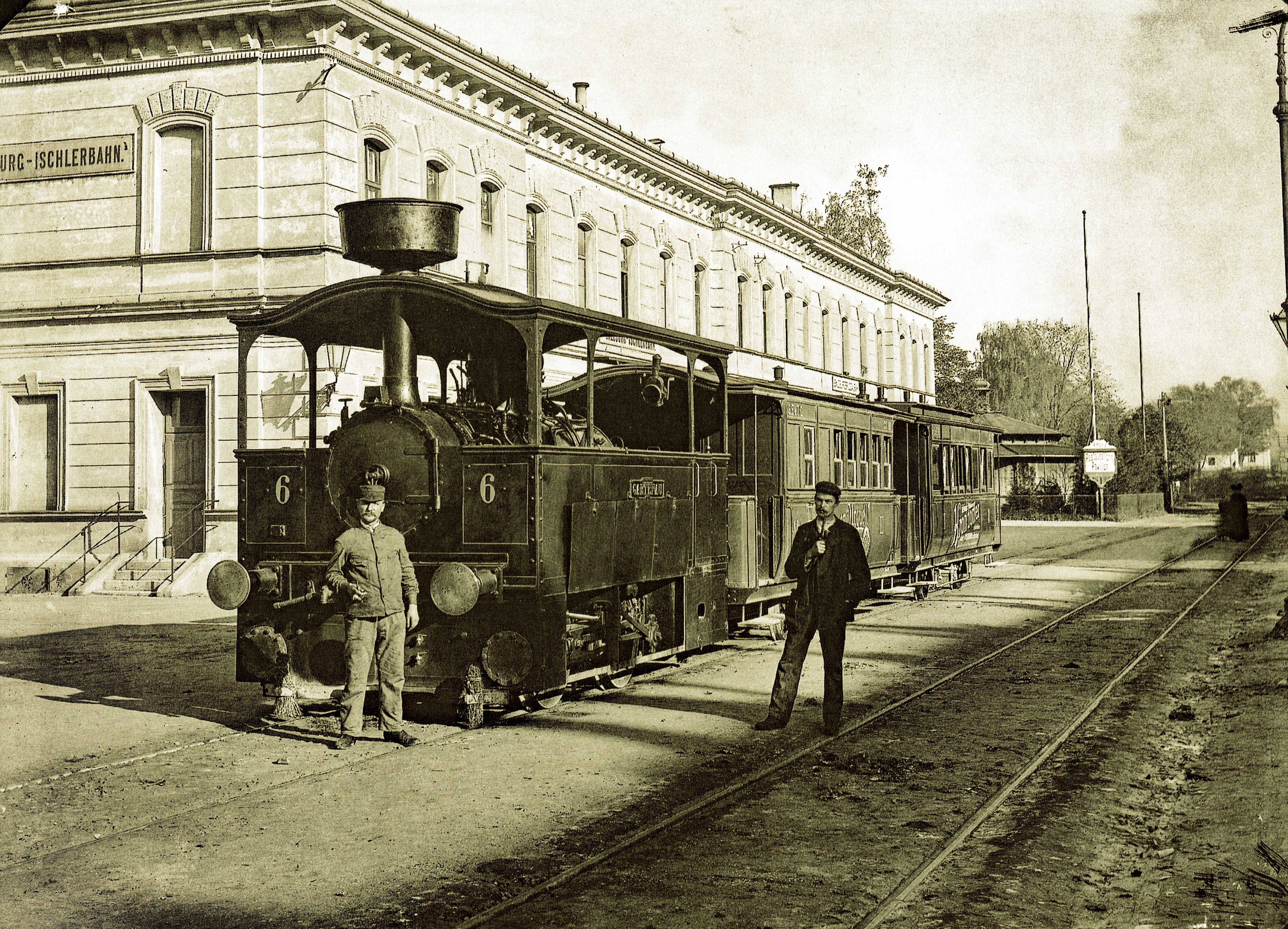 Würthle & Co. Die Lok 6 "Gartenau", 1887 gebaut, steht heute im Technischen Museum Prag. Die Dampftramway hatte 1886, zunächst bis Hellbrunn, dann bis Drachenloch den Betrieb aufgenommen. Die Strecke wurde 1907 bis Berchtesgaden erweitert.