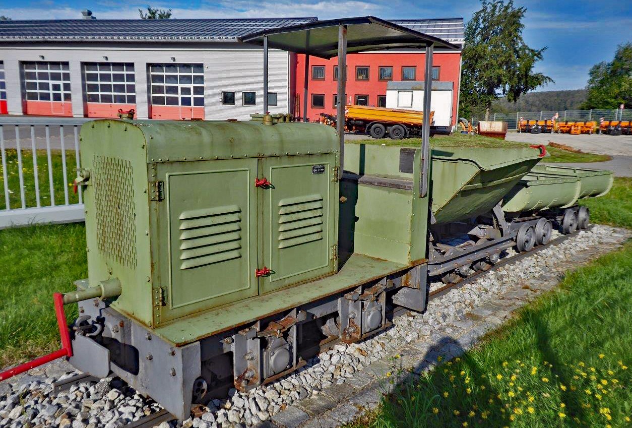 In der Straßenmeisterei Freyung wird die Henschel Fab. Nr. 1553, Bj.1938 als Erinnerung an die unverzichtbaren Dienste von Feldbahnen im Straßenbau, gezeigt.