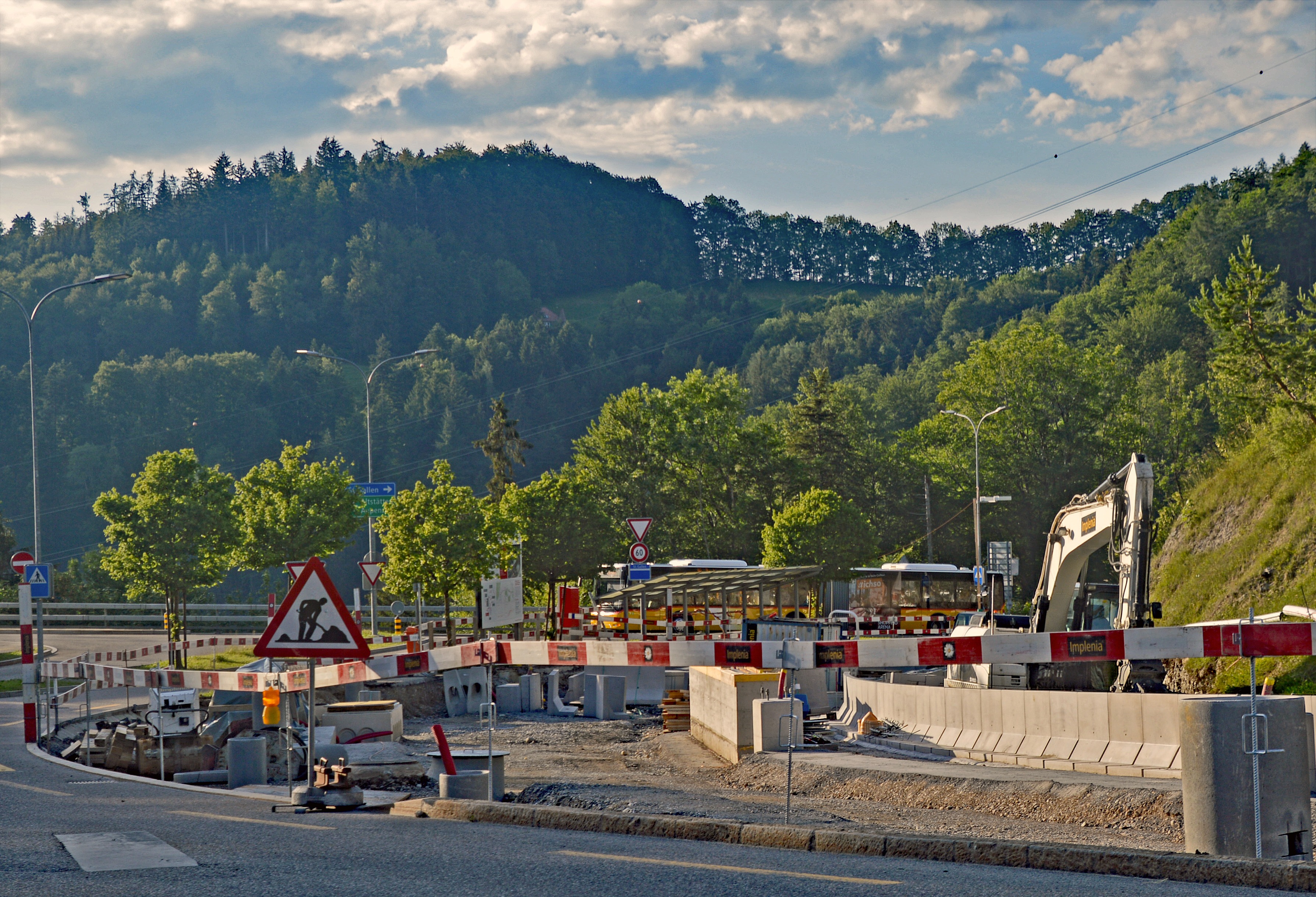 Appenzellerbahn Streckenerneuerung zwischen Gais und St. Gallen, Baustelle der Haltestelle "Riethüsli" noch ohne Gleis