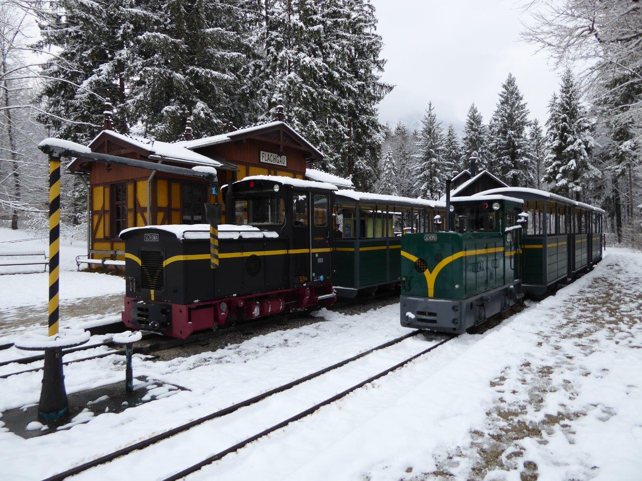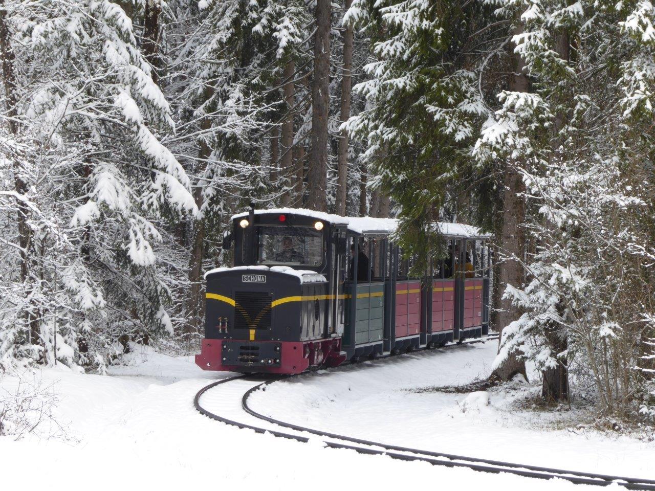 Die 600mm Schmalspurbahn im Salzburger Freilichtmuseum Großgmain – sie geht übrigens heuer bereits in die 12.Saison – ist nur selten mit durchgehender Schneedecke zu bewundern.