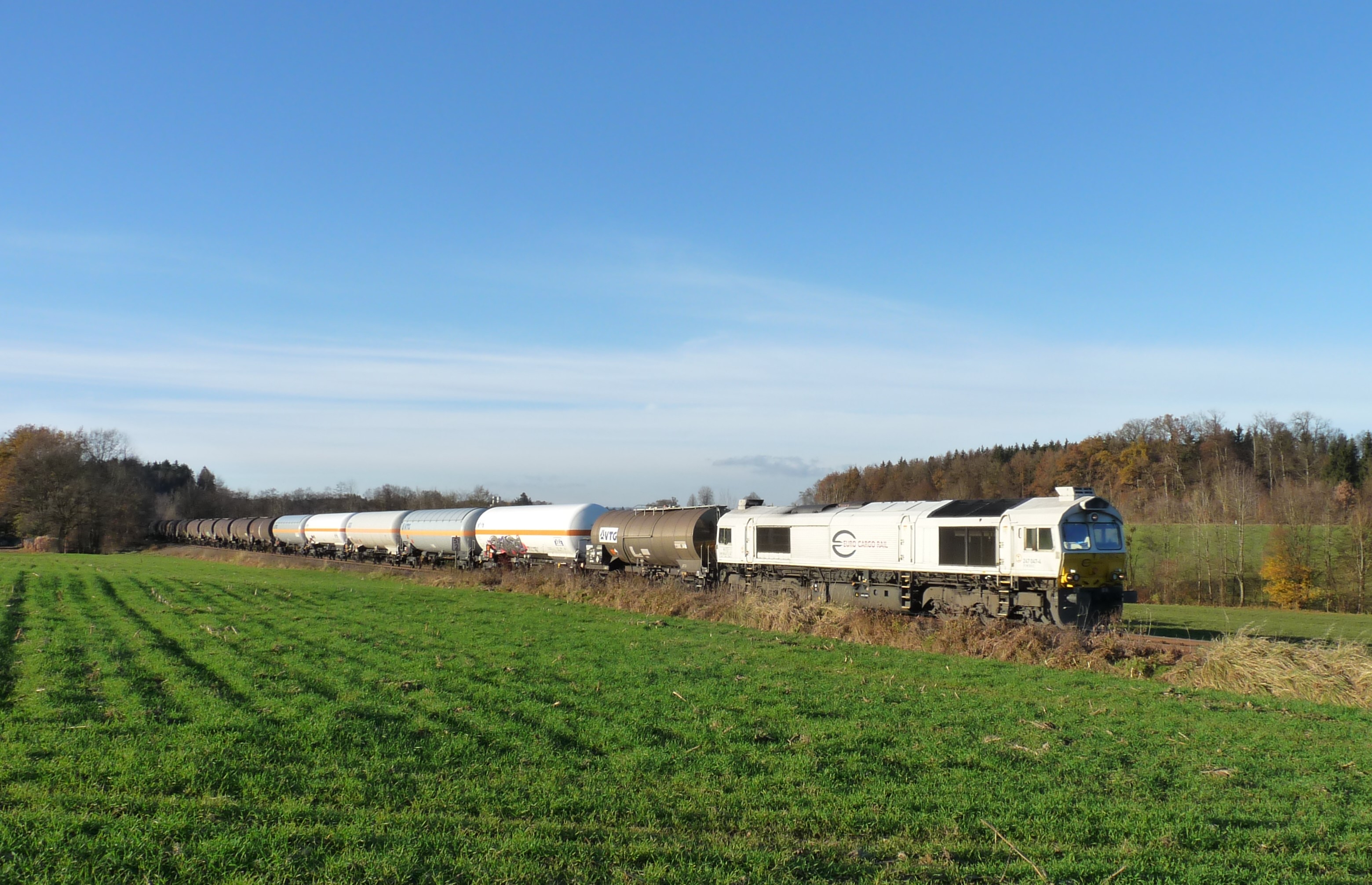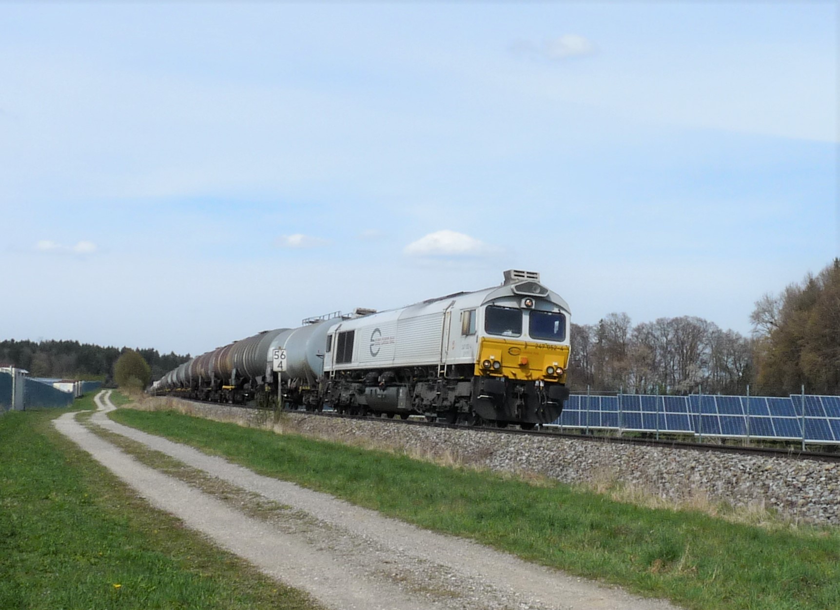 247 052-4 mit Kesselwagenzug zwischen Lepperding und Gastag.