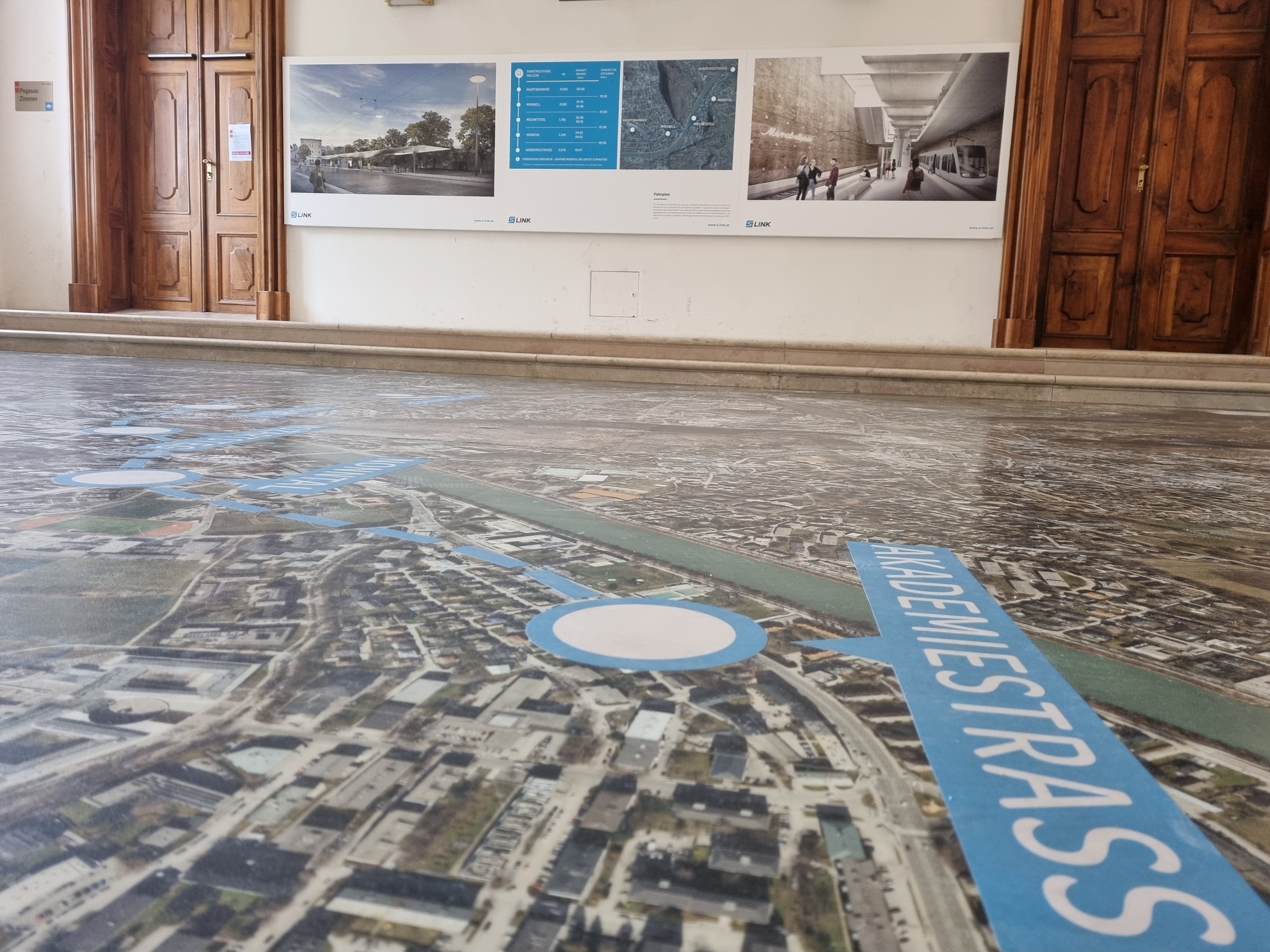 Nur noch für kurze Zeit ist im Schloss Mirabell in der Wolf-Dietrich-Halle eine Ausstellung rund um das Nahverkehrsprojekt S-LINK zu finden.