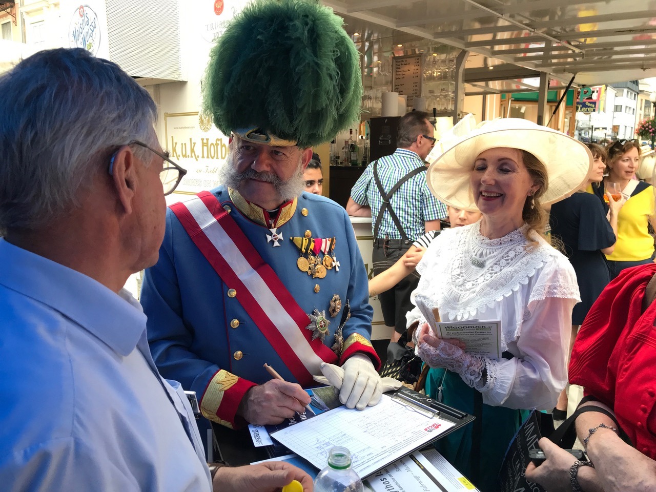 Der "Kaiser" gibt seine Unterstützungsunterschrift für die "Neue Ischlerbahn" ab. (15.8.2019)