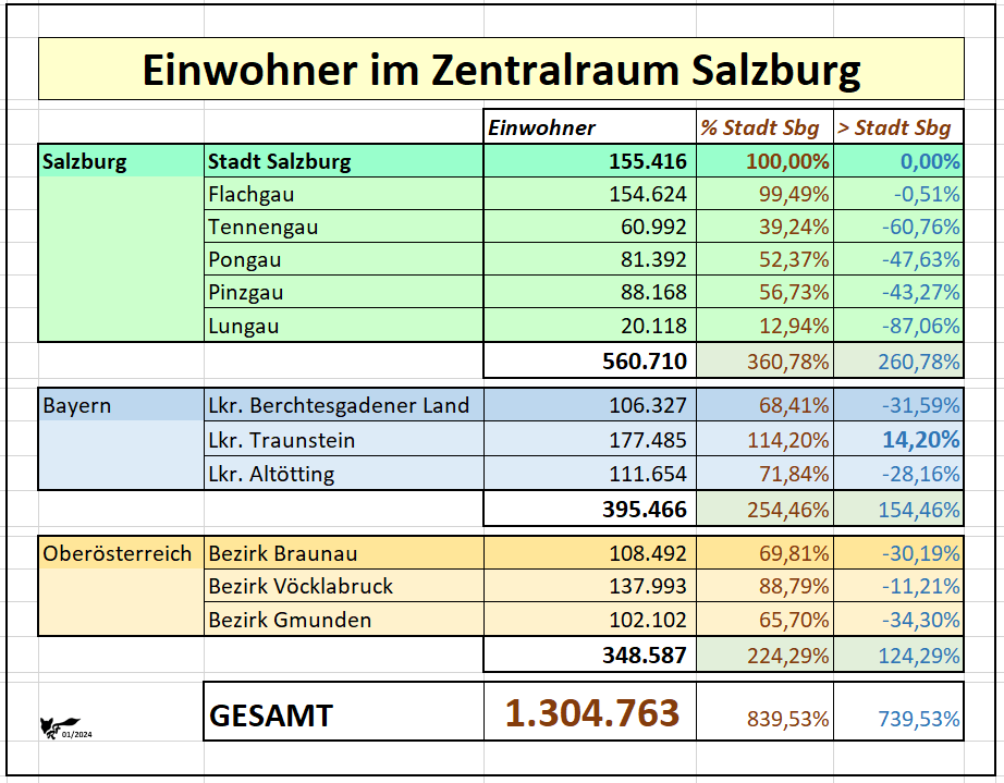 Einwohner im Zentralraum Salzburg mit angrenzendem Bayern und Oberösterreich im Umkreis von 50 Kilometer um die Stadt Salzburg