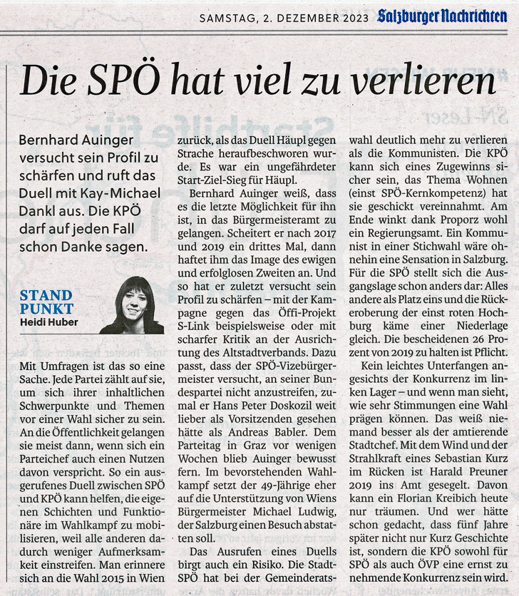 Übrigens wurde in Salzburg noch nie jemand zum Bürgermeister gewählt, der etwas verhindern wollte. Die Bevölkerung spürt so etwas!