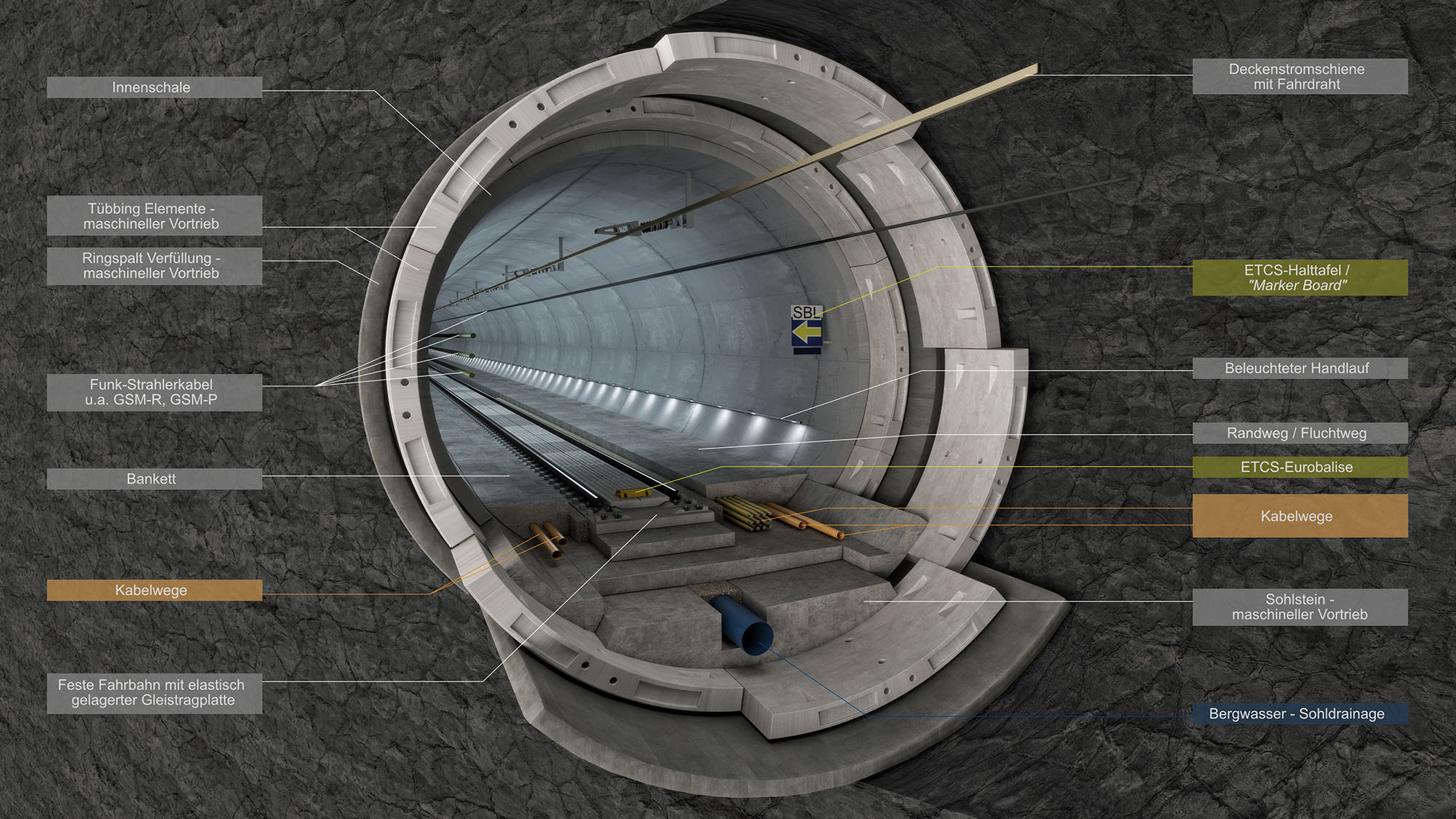 Mehr als die Hälfte des Tunnels ist bereits mit Technik ausgerüstet. Bis Ende des Jahres werden alle Hauptarbeiten fertig gestellt. Parallel startete mit März bereits die Installation der Oberleitung.
