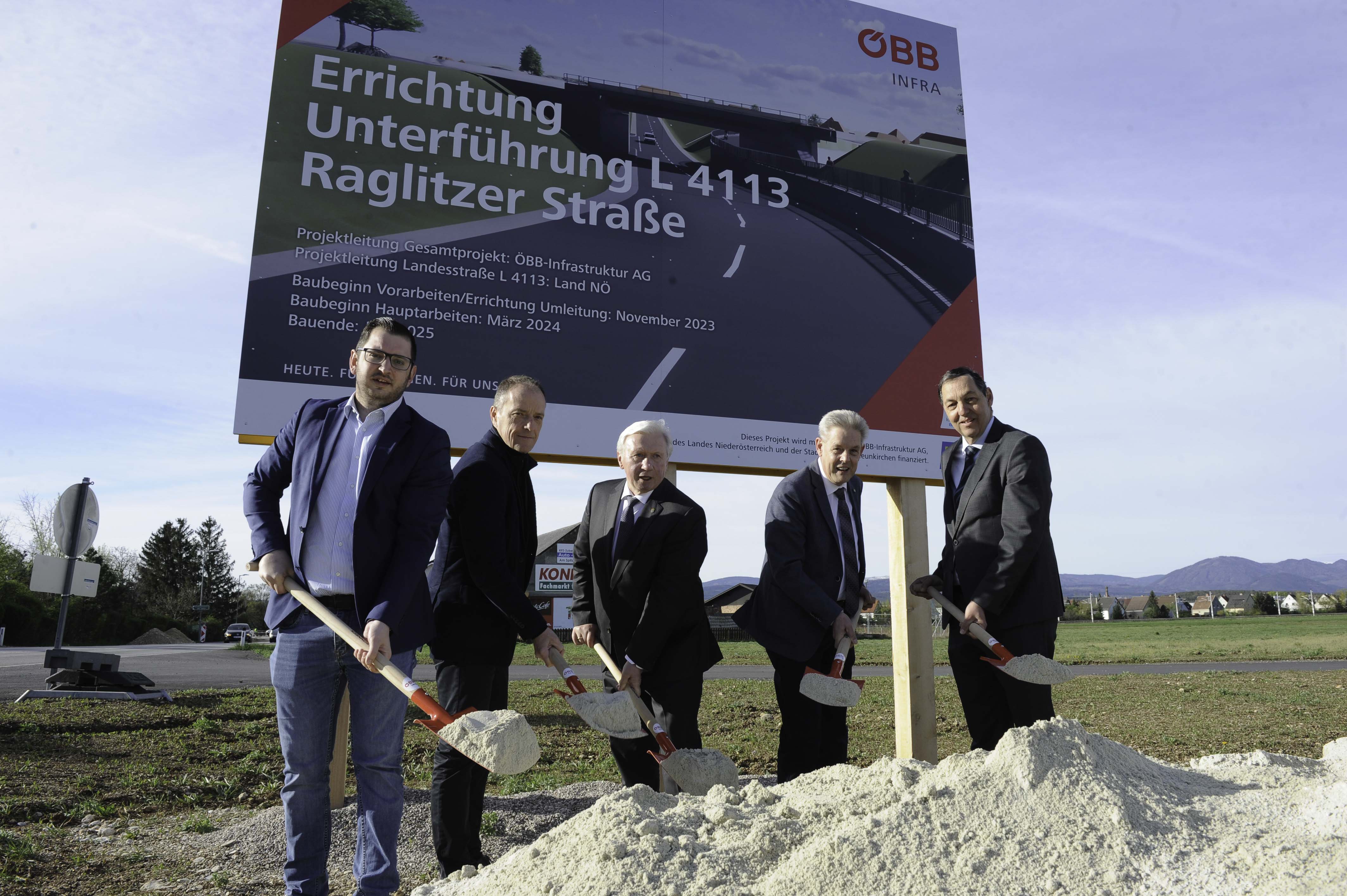 Die Eisenbahnkreuzung mit der Raglitzerstraße wird in einem gemeinschaftlichen Projekt der ÖBB mit dem Land Niederösterreich und der Stadt Neunkirchen aufgelassen und durch eine Unterführung ersetzt, für die die Hauptarbeiten heute begonnen haben. Nach vierzehn Monaten Bauzeit sollen Fertigstellung und Verkehrsfreigabe im Juni 2025 erfolgen. Die Kosten für die Unterführung belaufen sich auf 9,8 Millionen Euro.