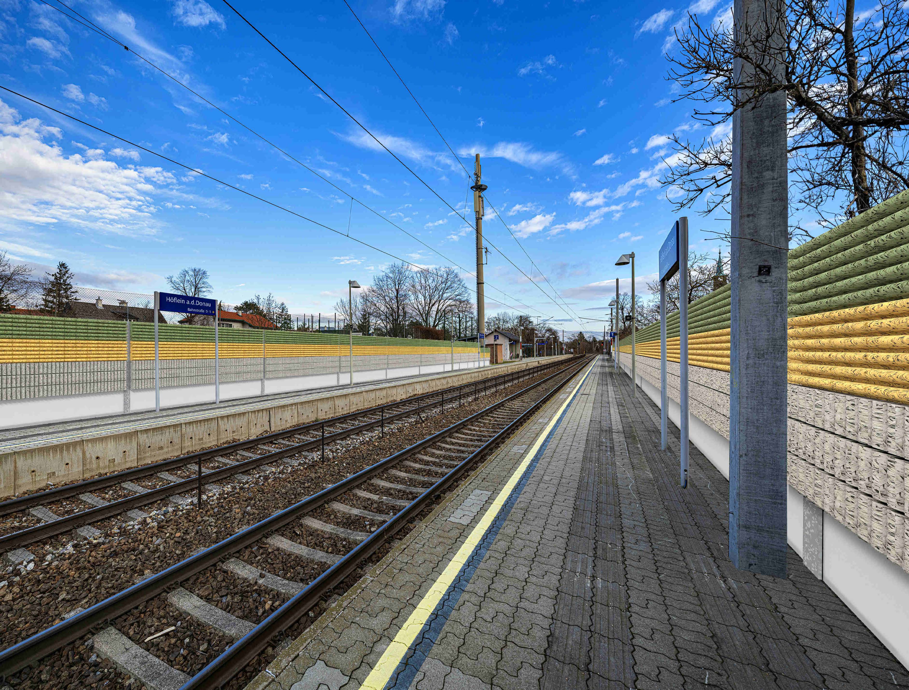 Entlang der Franz-Josefs-Bahn wird im Zuge der Modernisierungsmaßnahmen in den Schallschutz investiert. Seit 2024 wurden in der Stadtgemeinde Klosterneuburg entlang der Bahnstrecke bereits Lärmschutzwände errichtet. Bei den aktuellen Bauarbeiten erhält Höflein an der Donau auf rund einem Kilometer eine weitere Lärmschutzwand. Das bringt für die Anrainer:innen mehr Ruhe und Lebensqualität. Zwischen den Bahnhöfen Höflein an der Donau und St. Andrä-Wördern erfolgen außerdem Arbeiten an der Gleisanlage. Zwischen Kritzendorf und St. Andrä-Wördern werden die Oberleitungen erneuert.