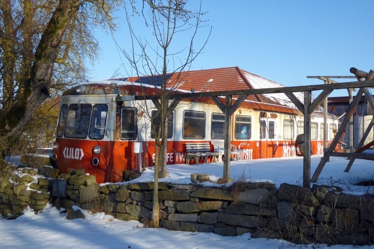 Ehemaliger KBE Triebwagen als Gartenhaus